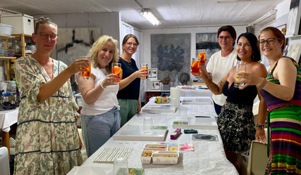 Bei einer privaten Malparty - mit viel Spaß und einem Drink in der Hand!